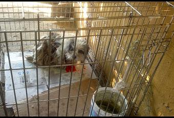 Esta pequeña perrita que no llega a 6 k llevaba ya 2 años en el campo en los alrededores de un chalet de Brenes. LLegó allí cojita quizás por un golpe de un coche ya que este chalet está en carretera entre 2 pueblos. Allí le daban comida y agua, no se acercaba al chalet solo en los alrededores, cuando me lo dijeron les dije que intentaran cogerla pero no se acercaba a las personas, desconfiaba y solo se relacionaba y comía con los gatos de este chalet. ESta familia solo está en este chalet los veranos y temía que ahora ya se fueran de nuevo y volviera a quedarse allí la pequeña toda llena de bichos y con un pelo estropajo y la caca pegada a su culito. Les dejé mi jaula para que les echaran de comer dentro todos los días y ya cuando confiara que le cerraran la jaula con la cuerda. Y por fin me llamaron ¡la tenían!!! cuando fui a cogerla pensé que sería una pirañita pero nada de eso, se dejó coger y lo que tenía era pánico, se quedaba inmóvil como hacen algunos insectos para defenderse.