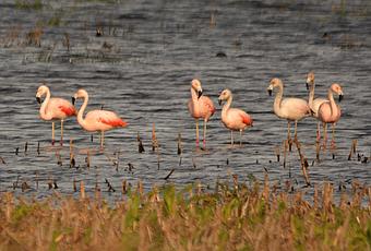 Los flamencos son aves sociables, siempre se los encuentra formando parte de bandadas enormes; existen 6 especies en el mundo, 4 de ellas en Sudamérica de las cuales dos están restringidas a los lagos andinos.