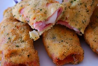Preparación: Extendemos las lonchas de jamón cocido, que deben ser finas pero sin romperse. Sobre ellas colocamos una loncha de queso tierno y que funda con facilidad. Enrollamos el jamón con el queso haciendo el flamenquín que podemos sujetar, si queremos, con un palillo de dientes.