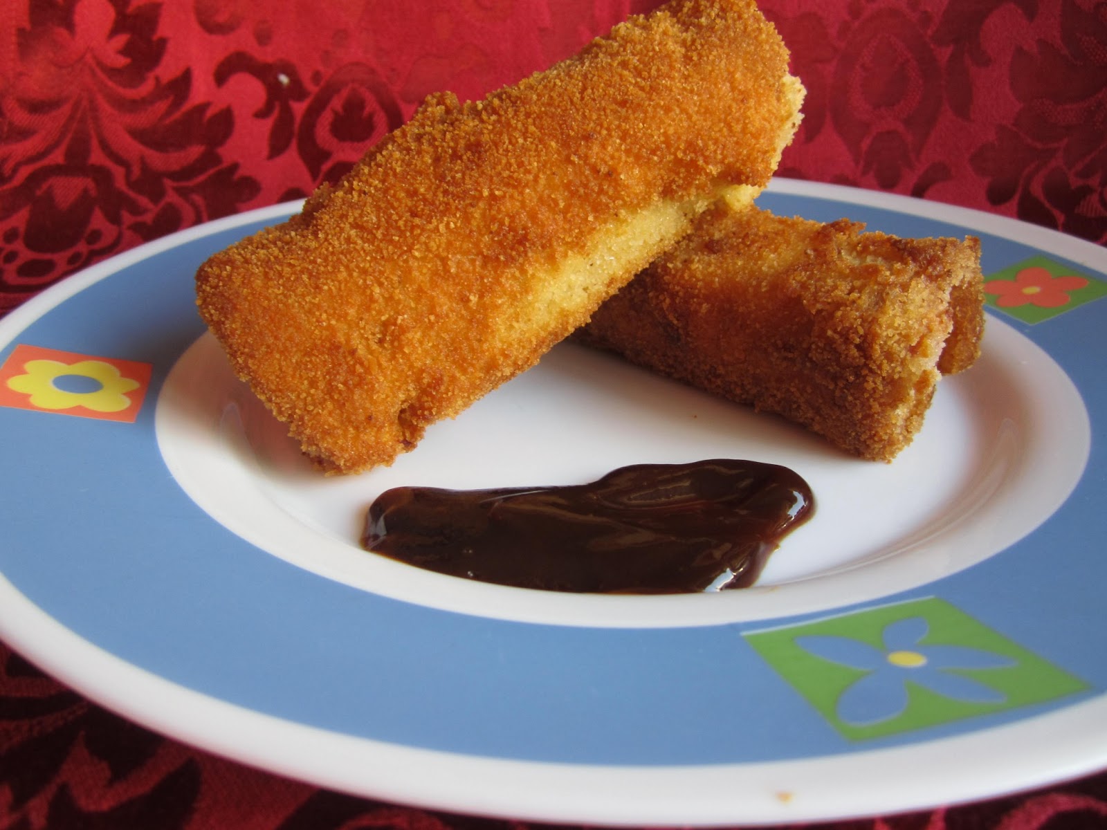 Una receta sencilla de aprovechamiento, ideal para los niños, que van a disfrutar echándonos una mano en la preparación y sobretodo comiendo.INGREDIENTES:- 5 Rebanadas de pan de molde- 5 lonchas jamón york.- Salchichas de Frankfurt.- 5 triángulos de queso manchego tierno de oveja Vega Sotuélamos.- 1 huevo.- Pan rallado El MolinoPREPARACIÓN:Estiramos cada rebanada de pan de molde con un rodillo de cocina hasta que quede bien finito.Colocamos el jamón york, la salchicha y el queso y enrollamos sobre si mismo.Clavamos dos palillos en las puntas para que no se abran y rebozamos en huevo y pan rallado.Freímos en aceite no demasiado fuerte para que no se quemen y les vamos dando vueltas por todos los lados para que se doren por igual.Como unas imágenes valen más que mil palabras os dejo fotos del paso a paso: