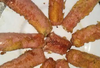 se ponen las salchichas en la plancha ya que deben estar asadas se cortan por la mitad a lo largo y se reservan, sobre una tabla o bandeja de trabajo se pone una lonchita de jamón york otra de tranchete y la mitad de una salchicha se enrrolla y se van poniendo en un plato hasta que