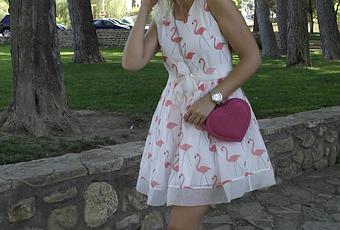 Hoy os enseño el vestido que tanto os gustó la semana pasada en las redes sociales! La verdad es que es uno de esos vestidos con los que te sientes muy femenina nada más ponértelos. Los flamencos le aportan el toque trendy de la temporada, además tiene una capa de tul bajo la falda que hace que quede con más vuelo. Tacón cómodo y pelo recogido fue mi opción para pasear una calurosa mañana. Espero que os guste! Mil besos ;)