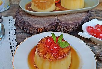 Hoy vamos a preparar un flan básico de royal pero acompañado de piña caramelizada.