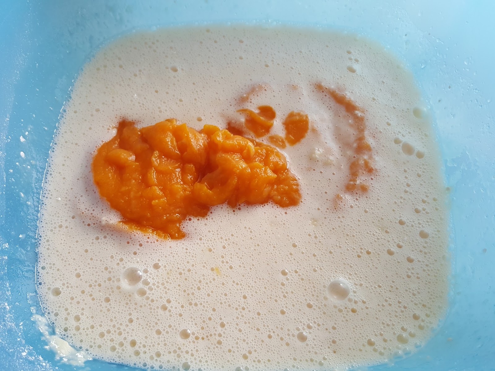 4. - Le añadimos el resto de ingredientes, menos la calabaza, y volvemos a batir.