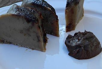 Ponemos el caramelo en el molde apto microondas, ponemos en el frigorífico para que solidifique un poco. Con esto conseguiremos que no se mezclen.