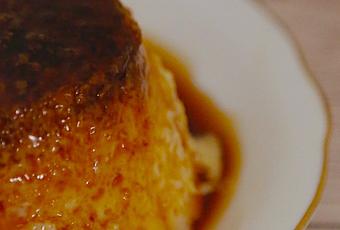 2. Cubrimos la base de los moldes con caramelo. Echamos la crema, colocamos los moldes dentro de una fuente para horno con agua. Horneamos 25 minutos, 200º.