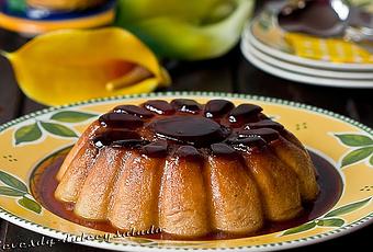 - Batir todos los ingredientes del flan (menos las nueces) hasta que no queden grumos y verter en el molde.