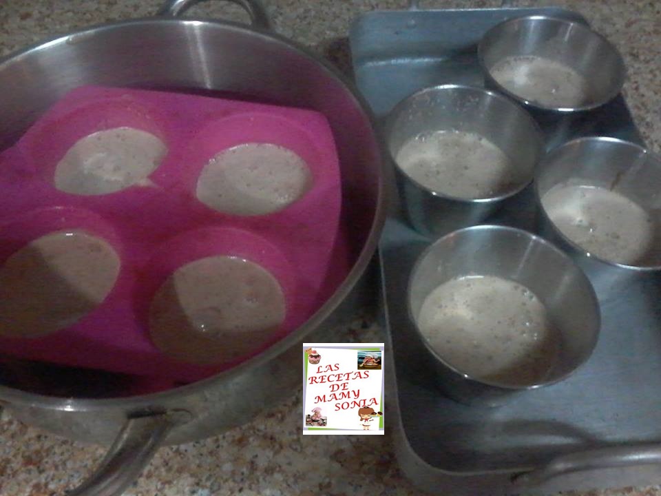 Yo a 6 les he puesto caramelo, menos a 2 porque a mi hijo Jairo y a mi hijo adoptivo Isra como yo le llamo no les gusta el caramelo con que antes de se oscurezca el caramelo le he puesto dos cucharaditas a los moldes
