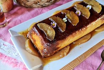- Cuando vayamos a consumir el flan, lo desmoldamos sobre una fuente de servir y colocamos graciosamente las laminas de manzanas, servimos y disfrutamos de una postre exquisito!