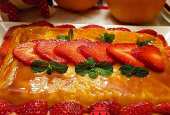 Sacamos y adornamos con las fresas y hojas de hierbabuena.