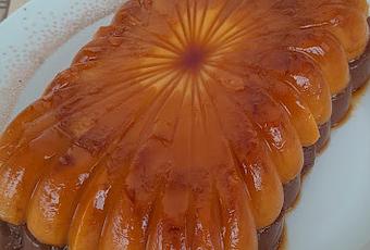 Es un postre sin horno, con preparado de flan y caramelo casero. Sólo necesita unas horas de nevera y un molde bonito. Nunca había usado ninguno de los que tengo de Nordic Ware para este tipo de elaboraciones y he de decir que el resultado es excelente.