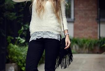 Y, pese a que soy bajita y suelen acortar algo las piernas, puedo plantarme taconazos y parecer de lo más alta! Combinado con un jersey con puntilla en el bajo de Rosegal y un bolso étnico de zara que le da los tonos de color!