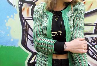TOP CROP: ZARA.PANTALÓN: ZARA.CHAQUETA: LUNABOLSO: CAROLINA HERRERA.COLGANTES: LA SEÑORITA / LENGUA DE TRAPO