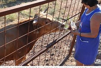 El mayoral de la ganadería de Alcurrucen Ángel y su esposa Fili hace casi dos años criaron con biberón un becerrito cuya madre se partió una pata y hubo de ser sacrificada. Esa historia ya la contamos y el animal, de nombre “Volador”, se encuentra en la dehesa con los otros toros, pero sigue manteniendo esos lazos de amistad con sus criadores.Ahora se encuentran inmersos en otra vivencia parecida, pero con una hembra, una becerrita cuya madre la abandonó al nacer. Ángel se la encontró acurrucada entre la maleza y la trajo a casa donde a base de biberones la han sacado para adelante. La historia se repite con final feliz. Esta becerrita, de nombre “Flautista” como su madre, vive entroncada en la familia. Duerme con los perros y pierde la cabeza por un buen tomate o una tajada de sandía fresquita, sin hablar de las galletas que Fili le da todas las tardes.