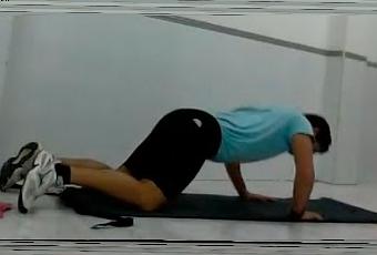 - Manos a la altura de los hombros- Bajar y subir flexionando los codos- Mantener la curvatura naturalde la espalda inmovilizando la cadera- Mirada hacia abajo- Manos hacia delante con los pulgares mirándose- Flexión de codos- Cuando mayor sea la base de nuestro cuerpo, tendremos mayor estabilidad. Por tanto cuando más abramos las piernas y más adelantadas las tengamos con respecto al centro de gravedad menor dificultad y, cuando más alejemos las piernas hacia atrás y más juntas mayor dificultad.
