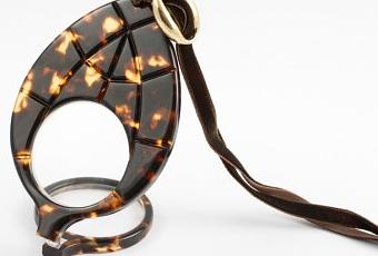 Los medallones están fabricados en acetato y montan lupas con una graduación de 2.00 dioptrías, lo que produce un sorprendente efecto de aumento para una instantánea vista mejorada. Los collares, adornados con atractivos abalorios, están fabricados en ante, terciopelo y cola de ratón.
