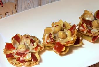 Cuando pensamos en recetas navideñas, siempre se nos vienen a la mente nuestros platos preferidos, las recetas de cordero asado, el buey de mar o la centolla rellenos, los langostinos o la merluza.Sin embargo, con verduras de temporada como las alcachofas podemos hacer platos tan ricos como estas flores de alcachofas y jamón que pueden servirnos de entrante, de guarnición o incluso para una de esas comidas o cenas entre las celebraciones de nochebuena y nochevieja cuando no sabemos qué comer.