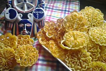 - Rapidamente lo metemos en el,aceite caliente y al momento intentamos sacar el molde y se desprende la flor ...dejamos que se dore ...retiramos y escurrimos en papel absorvente por el exceso de grasa