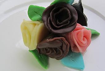 3- SOBRE UN SILPAT O SILICONA, HACER BOLITAS DE CHOCOLATE, APLASTAR CON UN RODILLITO E IR FORMÁNDO LAS ROSAS COMO MUESTRAN LAS FOTOS.