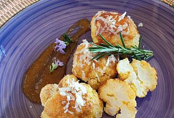 - Sirve las flores con la salsa por encima y añade el queso rallado el queso para terminar.