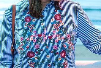 ¡Que vivan las flores y las rayas en otoño, en invierno y en todas las estaciones! Que las flores eran solo para la primavera, eso ya quedó atrás. Igual que las rayas para el verano. Estamos en la era de ponte lo que quieras, como quieras y cuando quieras. ¡Todo vale! (Bueno, todo todo... no, no hay que abusar de este término :3) La estrella de este look es, sin ninguna duda, mi nueva camisa de Zaful, que va a alegrar cualquier día del año con sus preciosos bordados. ¡Si es que no puede ser más bonita, romántica y delicada! Cada día soy más amante de los outfits en azul, creo que es un color que nos ofrece un sinfín de posibilidades con su amplísima paleta de tonalidades. ¿Y vosotros qué opináis de este color?