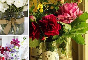 Podemos crear pequeños ramos dentro de un mismo jarrón, o decorar los tallos con un bonito lazo, o simplemente colocar las tres o cuatro flores que más te gusten en un gran recipiente.