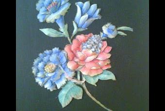 Este es otro de mis cuadros-recuerdo, las flores de tela en relieve. Recuerdo que cortabas el mismo dibujo (en este caso las flores) tres veces, la primera iba pegada tal cual a la madera, en este caso de fondo negro, la segunda llevaba silicona pegada por detras para causar efecto relieve, el borde del recorde la las hojas y flores estaba pintado con tinta china color sepia, para crear proundida al cuadro. Y...lo mismo sucedía en la tercera capa, más relieve, mas silicona y mas tinta china...el resultado es que parece que las flores se salen del cuadro.
