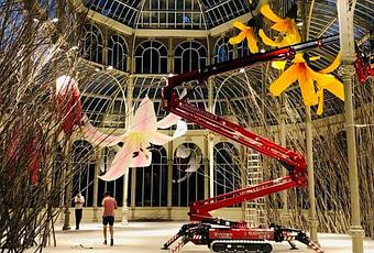 El icónico palacio de El Retiro fue construido -a imagen y semejanza del Crystal Palace, edificado en el Hyde Park de Londres- en 1887 con motivo de la Exposición de las Islas Filipinas (en el interior todavía hay bellos recuerdos vegetales del país insular asiático). En ese entorno de ensueño el artista Halilaj -nacido en 1986- expone su obra, que está basada en elementos escultóricos y bellas flores, todo de gran tamaño y que establecen una relación entre el exterior y el interior.