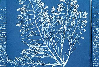 Como radiografías de la naturaleza teñidas en azul, la obra de Anna Atkins se dibuja en tonos cyan pero tiene su origen en los espacios verdes y llenos de plantas. Era botánica y fotógrafa, y fue la primera persona en publicar un libro ilustrado exclusivamente con imágenes fotográficas, del que se hicieron únicamente 12 copias. Utilizaba la técnica de la cianotipia, inventada por un amigo de la familia, como herramienta de estudio para agilizar el proceso de reflejar fielmente las características morfológicas de plantas, hojas, helechos, flores o algas.Su obra tiene la sutileza del artista que lo es sin querer, las delicadas hojas y ramillas parecen mecerse en un mundo misterioso y oceánico de tonalidades azules.
