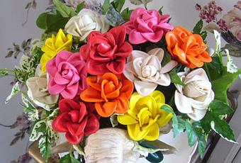 ¡Son flores hechas con globos de látex! ¿Cómo se consigue la forma de los pétalos? Insertando un “marco” de alambre dentro de un globo desinflado.