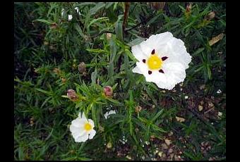 La jara pringosa y la jara cervuna se diferencian por sus flores en primavera, según tengan ó no llagas en sus pétalos.