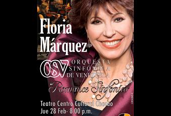 La llamada “Show Woman de Venezuela”, Floria Márquez, celebrará 40 presentaciones de su espectáculo Romance Sinfónico, con un nuevo concierto que tendrá lugar el jueves 28 de febrero a las 8:00 de la noche, en el Teatro de Chacao, en el que interpretará una rica selección de temas del repertorio romántico latinoamericano, junto a la Orquesta Sinfónica de Venezuela, Patrimonio Artístico y Cultural de la Nación.