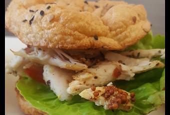 Este el mismo pan que utilizo para las burguers. Es parecido al ‘cloud bread’ pero con un poco de harina para que sea mas consistente.
