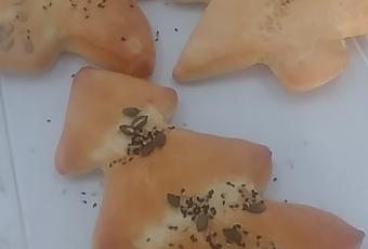 Preparación En un bol para hacerlo a mano o en el perol de la amasadora poner las dos clases de harina, el agua, la levadura fresca, el pellizco de sal y la sémola. Amasar y cuando esté bien amasado agregar la sal y el aceite de oliva y seguir amasando hasta que tengamos una masa elástica y uniforme. Entonces tapar con un paño y dejar reposar a temperatura ambiente durante una hora o hasta el día siguiente en la nevera. Pasado el tiempo de reposo pesar estirar la masa con un rodillo de pastelería sobre una superficie muy ligeramente aceitada y dejar de un grosor de más o menos 1 cm o 1 cm y 1/2. Cortar con un molde en forma de abeto y poner sobre bandejas de horno con papel. Untar con un poco de aceite de oliva y fermentar y cuando estén bien fermentadas pincelar de nuevo con aceite de oliva y poner semillas al gusto a modo de decoración o bien como he hecho yo otro modelo mas enriquecido ponemos un poco de queso crema para untar, orégano y un poco de bacon salteado. Cocer en el horno a unos 200º unos 15 minutos. Pero eso depende de los horno. Una vez hechas las focaccias dejar enfriar sobre rejilla y servir como aperitivo o para acompañar l a comida en estos días de Navidad.