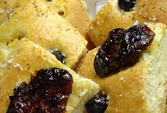 - Practicar con el dedo untado de harina, unos agujeritos en la masa e introducir las aceitunas, o alternar aceitunas y ramitas de romero fresco.