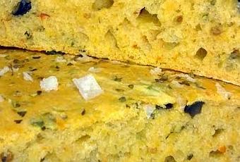 Es un pan plano típico italiano, su masa es muy parecida a la de la pizza, lleva fundamentalmente ingredientes como harina, levadura, aceite y agua, normalmente se decora con hierbas aromáticas tipo orégano o albahaca y sal gruesa. En algunas regiones de Italia la masa va integrada con queso, éste es mi caso, además de ponerle algún ingrediente que aporte un sabor particular dependiendo de cual vaya a ser su acompañamiento. La verdad es que la focaccia es tan versátil como las pizzas, podemos añadirle el ingrediente que queramos para darle sabor, normalmente se come tal cual pero muchos italianos lo abren por la mitad haciendo de él un sandwich para meter entre medias lo que mas nos guste. No dejéis de probarla, pero cuidado, es peligrosa, sabes cuando empiezas pero no cuando acabas. Una delicia.
