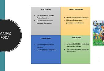 ¡Saludos! Después de haber leído el libro titulado Gruplin.Aventuras de un hobbitde la autora Inés Vega. Les comparto este pequeño análisis FODA con lo más relevante del libro.La matriz FODA está conformado por cuatro cuadrantes divididos en internos: donde encontramos las fortalezas y debilidades de una empresa, mientras en externos encontramos las oportunidades y amenazas.