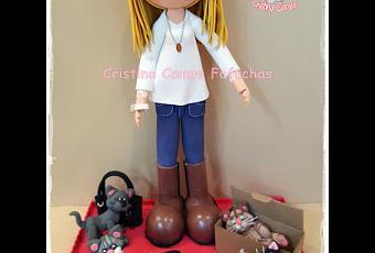 La muñeca que os dejo hoy va acompañada de sus mascotas, sus 4 gatos, los hemos puesto jugando con bolsos y zapatos que es otra de las cosas que más le gustan a Silvia.Medidas:35cmFOFUCHA CON GATOS