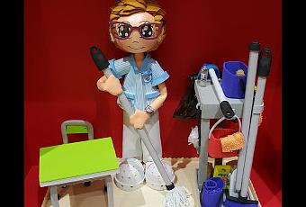 Tal como os he dicho aquí tenéis el resto de las fotos de la fofucha limpiadora. Con su uniforme de trabajo y el carrito, he puesto también un pupitre porque trabaja en una escuela.