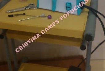 En este caso una modista con su máquina de coser, tiene muchos detallitos este trabajo.
