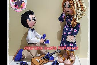 Ferran me pidió una fofucha muy especial. Este fin de semana iba a una boda y quería aprovechar para pedirle la mano a su chica. Quería una fofucha para que los novios se la entregaran mientras él le cantaba con su guitarra. Ains! que bonito.