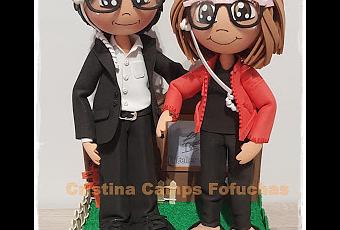 Muy buenas noches! Me paso un segundito para dejaros esta pareja totalmente personalizada. Miden unos 30 cm y es un detalle que han querido hacer unos novios al restaurante donde realizaron su banquete. He hecho en 3D a los dueños y la silueta de la Masía detrás. Espero que os guste.