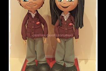 Mónica y Jose se casaron ayer y me pidieron unas fofuchas para obsequiar a sus familiares. Os dejo la primera pareja, Lorena y Jordi, vestidos con su uniforme de trabajo en el TMB.