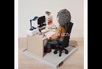 Nuevo trabajo! en esta ocasión es un fofucho en su oficina. He recreado todo su mesa y todo lo que tiene habitualmente sobre ella. Mide 25cm y la camisa esta pintada a mano para emular la original.