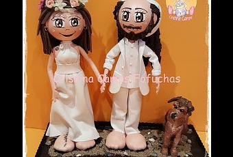 ¿Que os parecen esta pareja de fofuchos novios Ibicencos?. El chico lleva rastas y un pañuelo en la cabeza, como suele llevar siempre. les hemos puesto sus tatuajes y a su perrito.