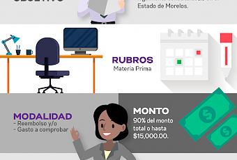 La convocatoria se llama “Fondo de apoyo emergente impulsa joven para la adquisición de materia prima a mi pymes morelenses de entre los 18 y 29 años de edad” El objetivo es apoyar a personas físicas y morales de jóvenes emprendedores entre los 18 y 29 años que hayan adquirido o adquieran materia prima y, preferentemente comprueben afectaciones económicas fehacientes derivadas del impacto COVID-19 como el aumento de la materia prima, cambios de proveedores o escasez de dichos productos.