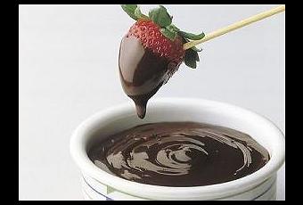 Mantén el chocolate caliente en la fondue y ve bañando las frutas en él.