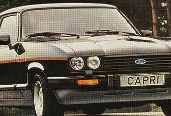 Marca:Ford Modelo:Capri Año:1983Motor:naftero Ubicación:delantero Marca:FordCilindros:6 en V Cilindrada:2772 cm3Diámetro:93 mm. Carrera:68,5 mm.Potencia:160 CV DIN RPM:5700 Compresión:9,20:1Tracción: trasera Caja de velocidades:5 marchas adelante y retrocesoSuspensión delantera:independiente tipo Mc Pherson con resortes helicoidales y amortiguadores hidráulicosSuspensión trasera:eje rígido con elásticos semielípticos longitudinales y amortiguadores hidráulicosFrenos delanteros:a disco Frenos traseros:a tamborNeumáticos:205/60 VR 13Dimensiones: Largo:4439 mm. Ancho:1698 mm. Alto:1323 mm.Distancia entre ejes:2563 mm. Trocha delantera:1400 mm.Trocha trasera:1431 mm. Plazas:4Carga útil: 592 kg Peso:1230 kg. Velocidad máxima:210 Km/h
