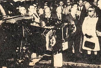 En la vieja fotografía, tomada de la revista Coche a la Vista!.. número 231 del mes de octubre de 1966, se puede apreciar la unidad 50.000 del Ford Falcon durante la ceremonia mencionada.