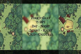 Lo que contiene este archivo comprimido es un pack de mapas de juego,o mejor dicho un mapa pero con varias versiones: 8 versiones de un campamento en un bosque, que son: Noche x2*, Día, x2* Lluvioso x2* y Soleado x2* (* Con cuadricula y Sin cuadricula. Así salen las 8 versiones del mismo mapa). Se pueden usar impresos o en una VTT .Esto permite a los DMs importar y configurar su propia cuadrícula en la versión sin cuadrícula, lo que permite que todos la usen independientemente del lugar/formato en la que jueguen la partida sesión.